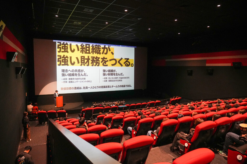 巨大なスクリーンと最高の音響設備を貸し切り、単なる会社の総会を超えた、エンターテインメント性溢れる熱い一日となりました。