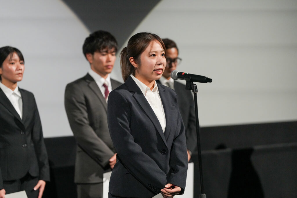 入社前の内定者の皆さんにも参加いただき、内定書の授与と代表者による挨拶が行われました。緊張しながらも堂々と決意を語る姿に、既存社員も背筋が伸びる思いでした。
